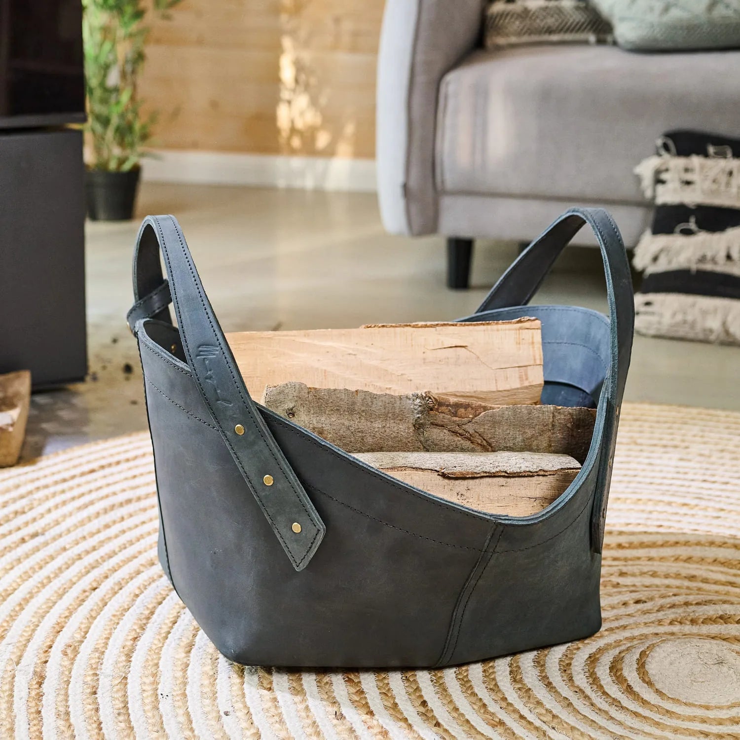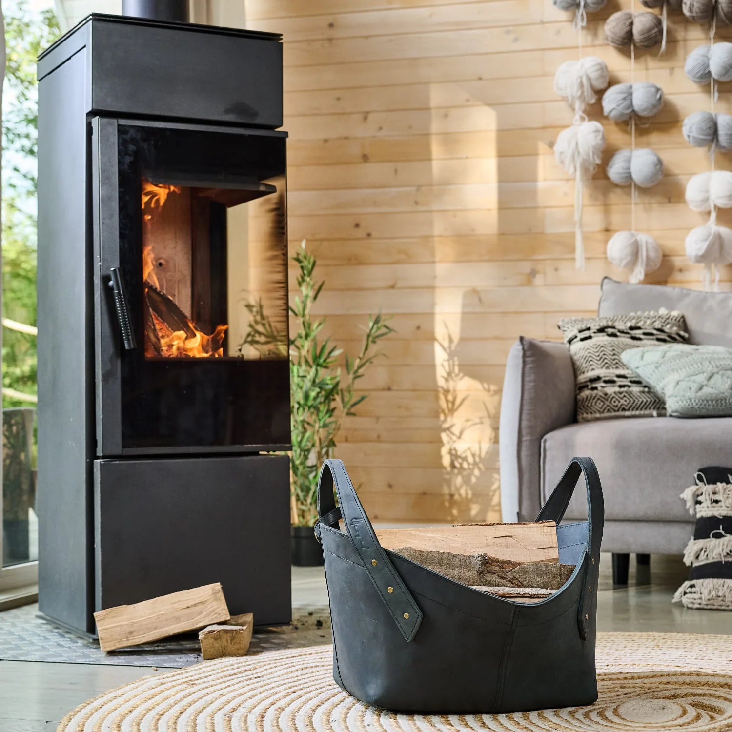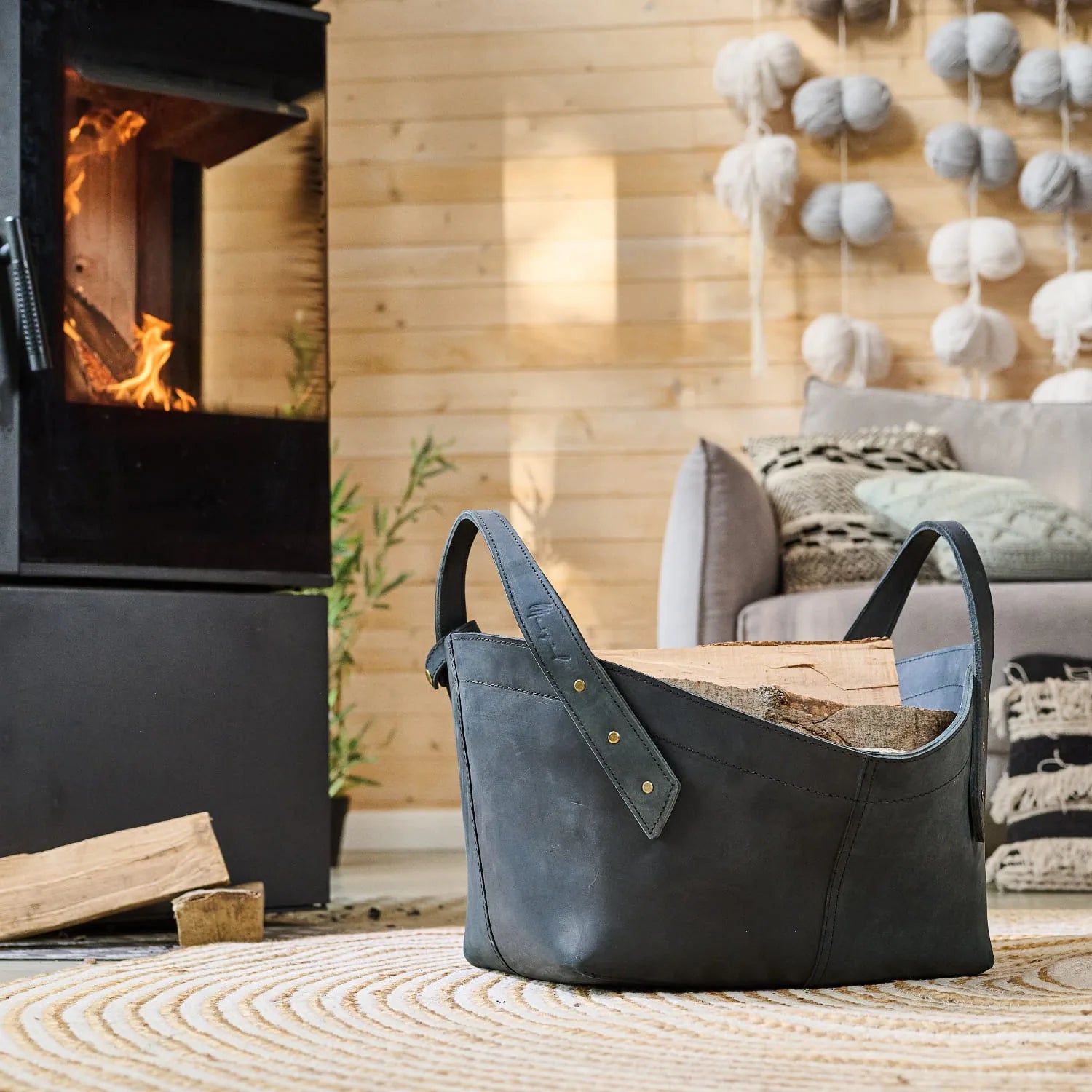 Kaminholzkorb aus Leder – Schwarz Crazy Leder