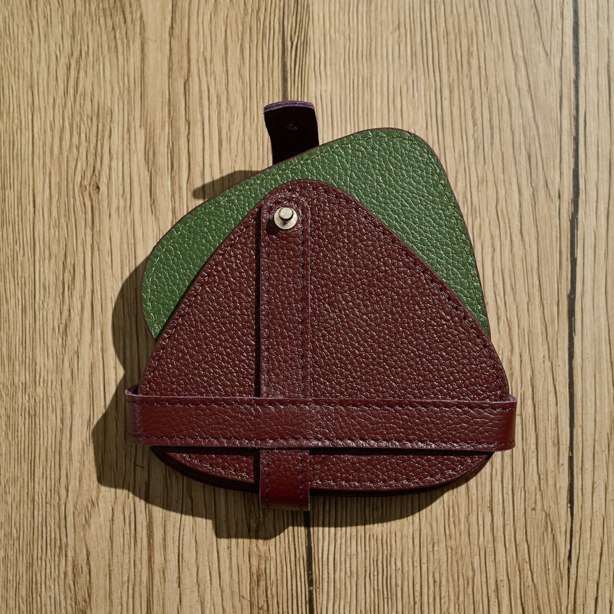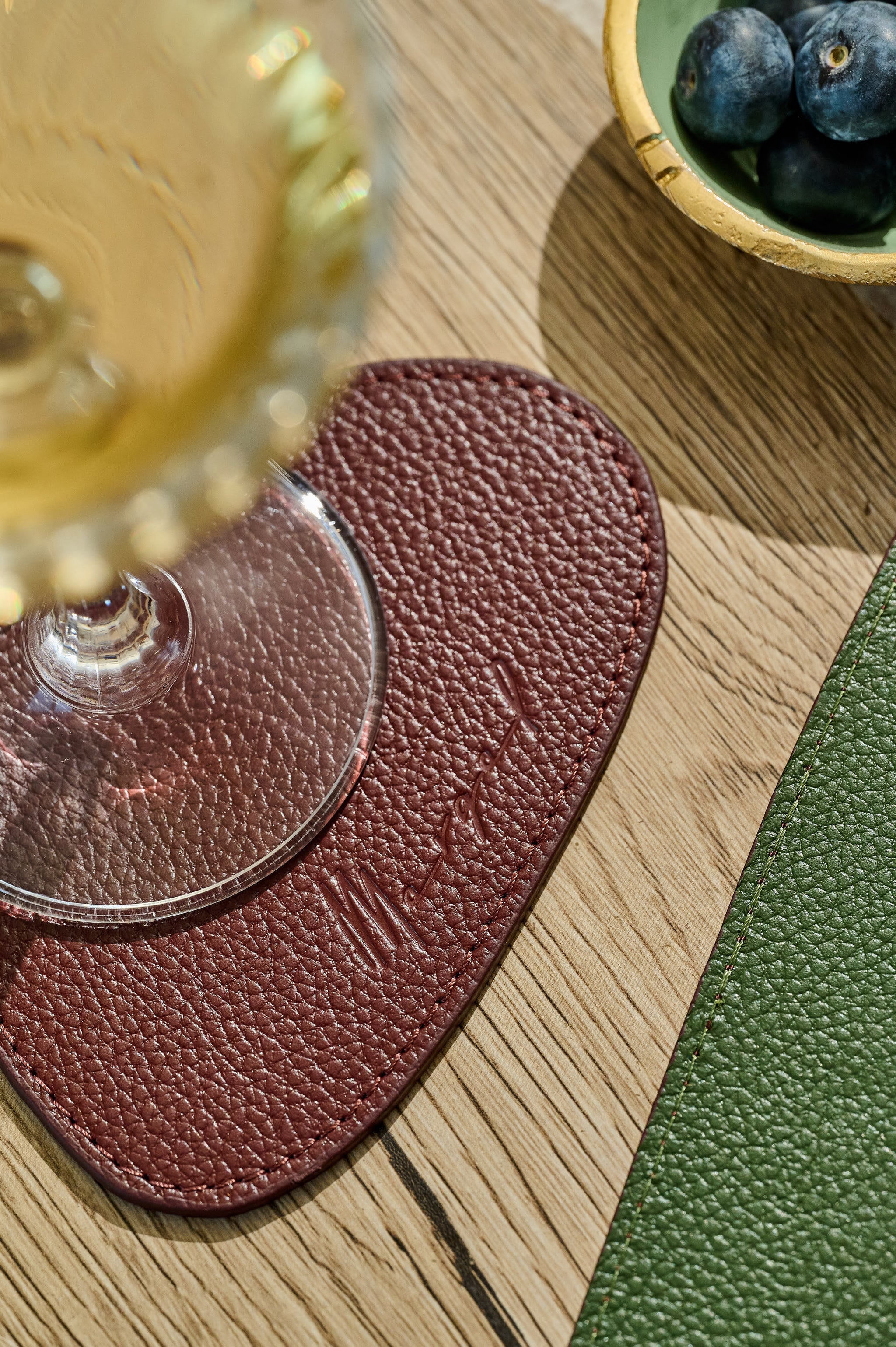 Leder-Glasuntersetzer – Olivgrün/Burgunderrot (wendbar), 6er Set